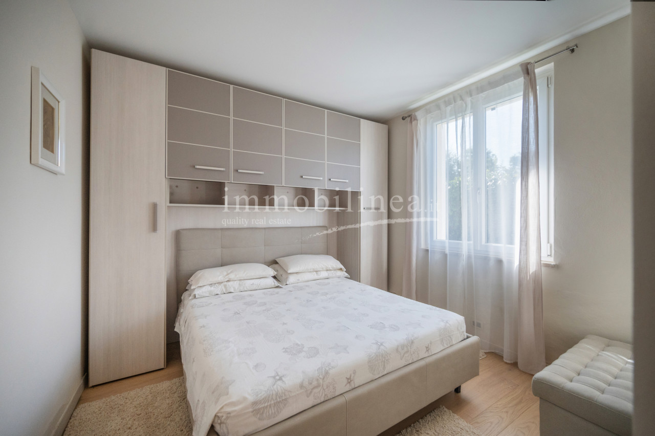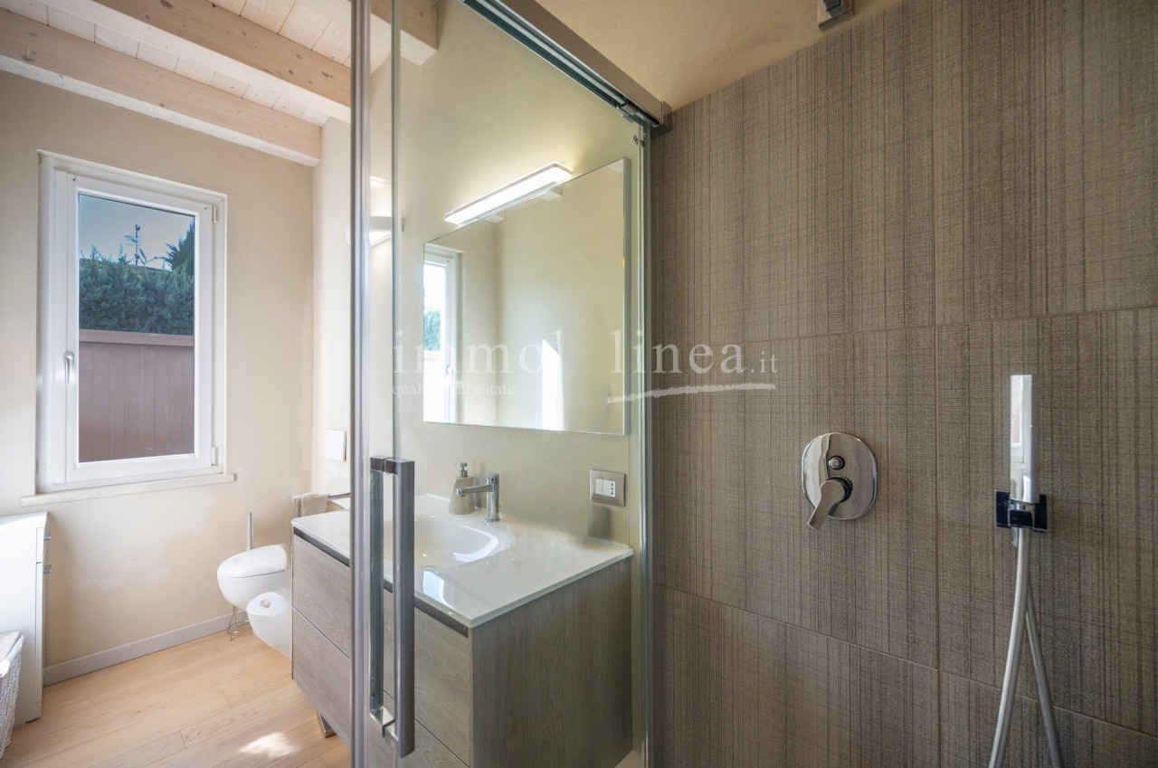Die Villa bietet helle und gut gestaltete Räume mit großen Fenstern, die es natürliches Licht ermöglichen, jede Ecke des Hauses zu erhellen. Die Innenräume zeichnen sich durch moderne Oberflächen und hochwertige Materialien aus und schaffen eine einladende sowie raffinierte Atmosphäre.
