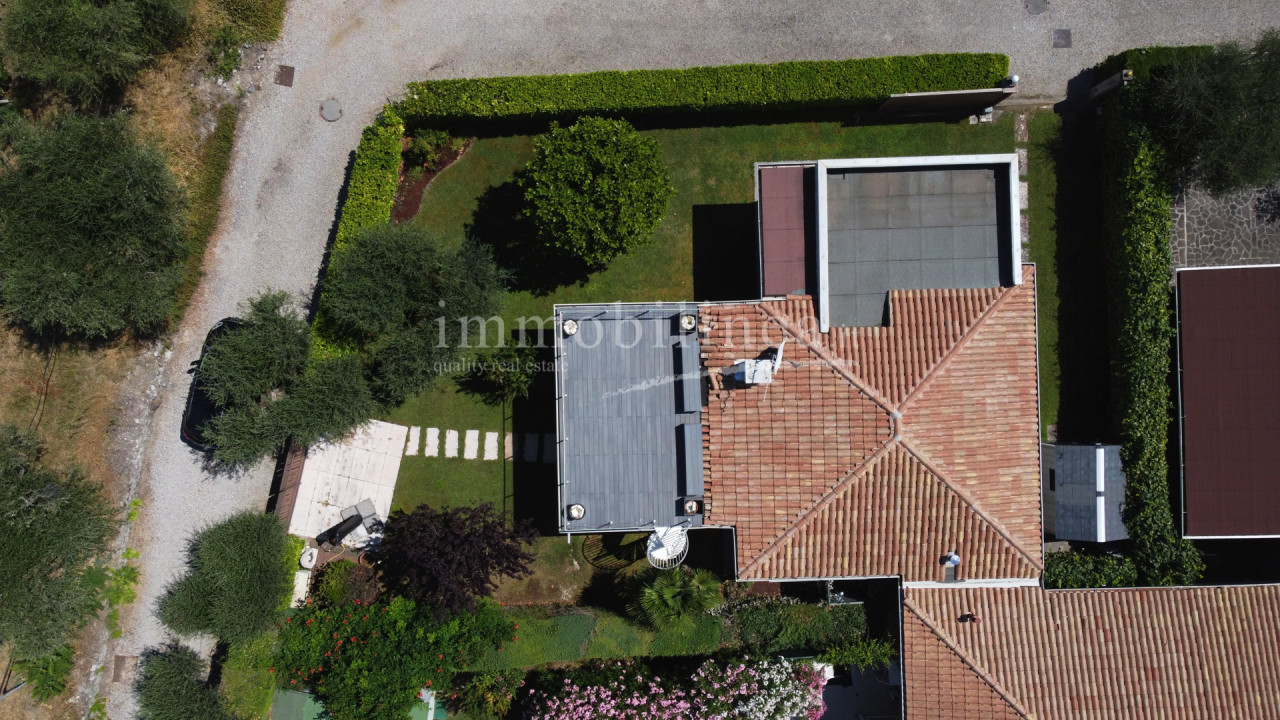 Außenbereich lädt ein! Die Villa ist zudem von einem gepflegten grünen Garten umgeben, der perfekt ist, um sonnige Tage im Freien zu genießen. Eine Panoramaterrasse im oberen Stockwerk bietet einen atemberaubenden Blick auf die umliegende Landschaft und den See und eignet sich hervorragend für entspannte Momente oder Sommerabende unter den Sternen.