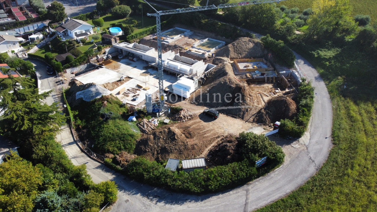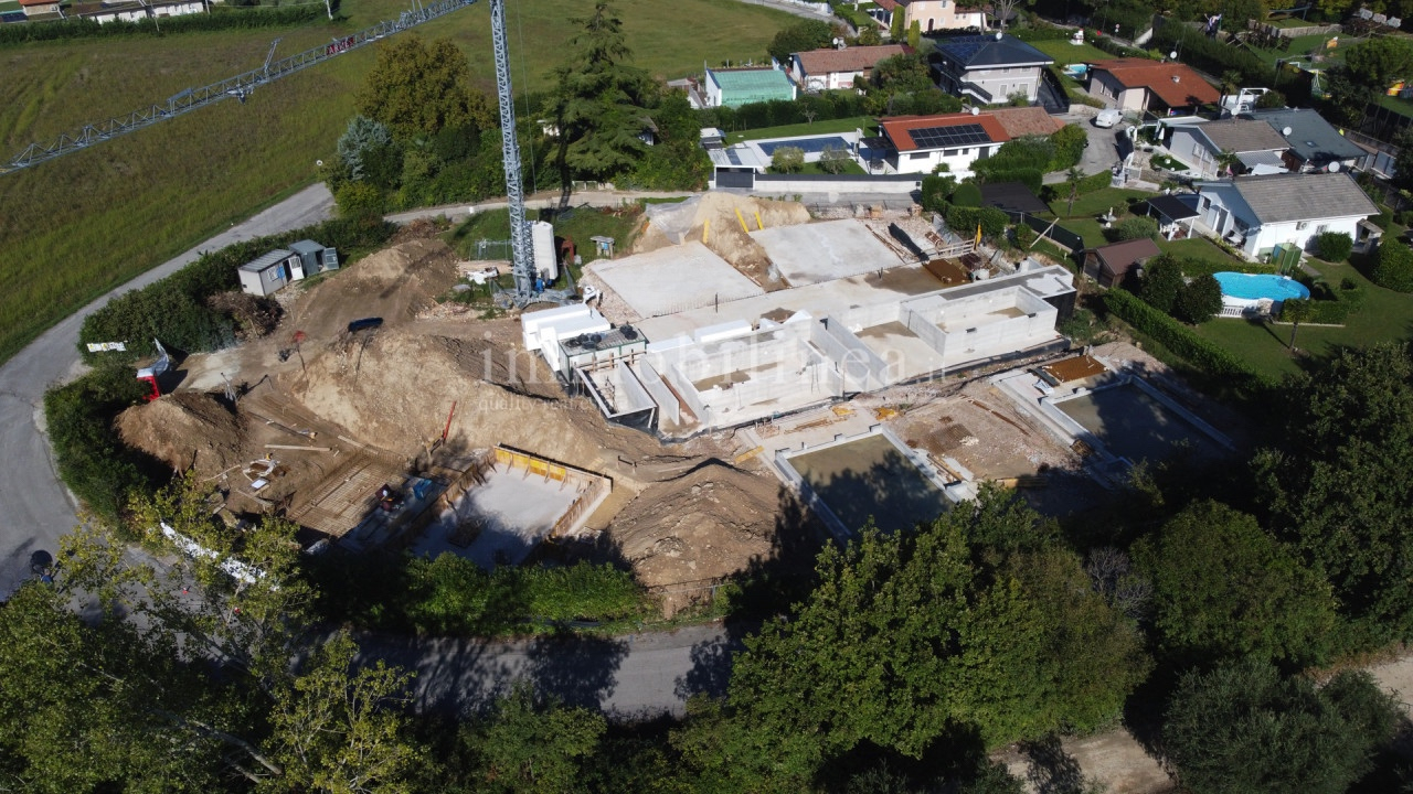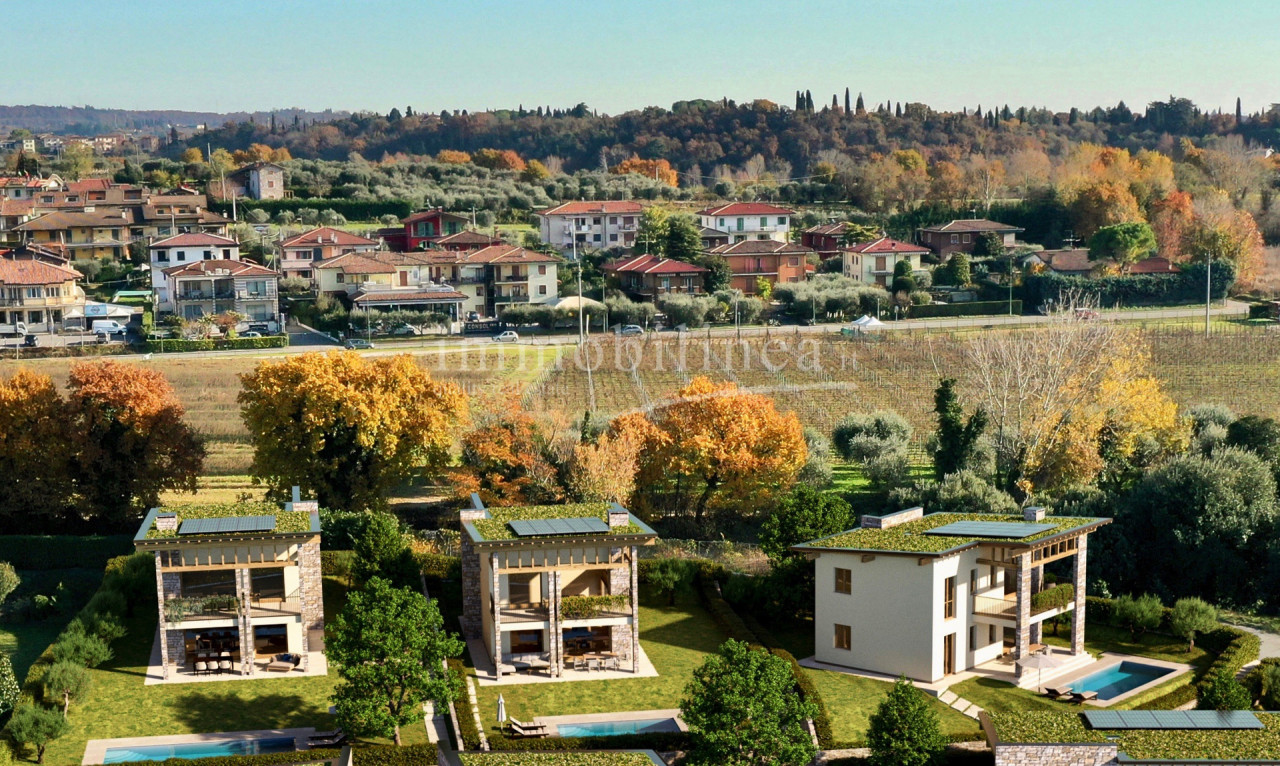 LAZISE - In an exclusive closed and reserved area, surrounded by greenery overlooking the lake, we offer a new construction of seven single villas with swimming pool. The villas, built with the most modern building technologies, will be built with an anti-seismic wood structure in class A4. Solution developed on two levels with the possibility of the fourth bedroom or a living area of 50 sqm, porch on the garden floor and large panoramic terrace on the upper floor. Technological systems, large garages in the basement, tranquility, panoramic views. A must see!