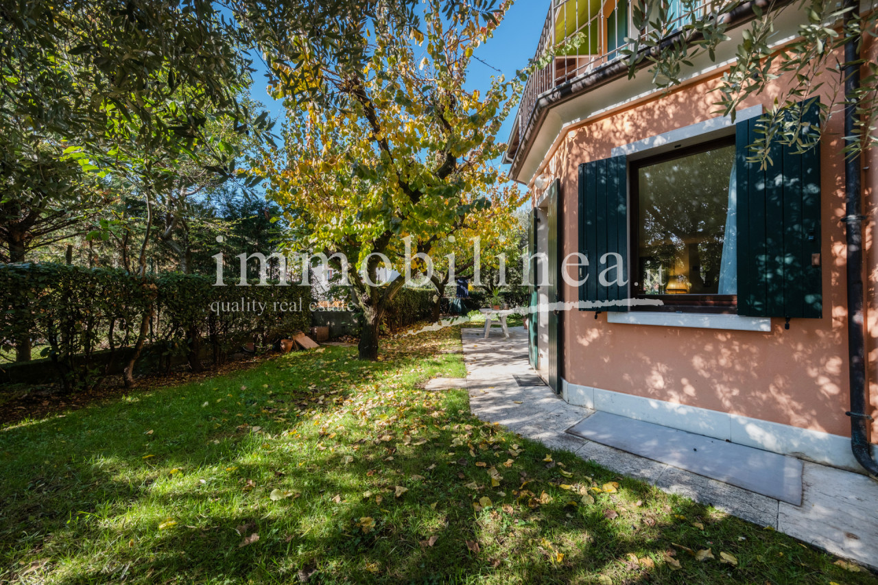 The villa is surrounded by a lush private garden, ideal for outdoor moments in complete privacy: the large windows of the double living room ensure constant natural light and a pleasant view of greenery.