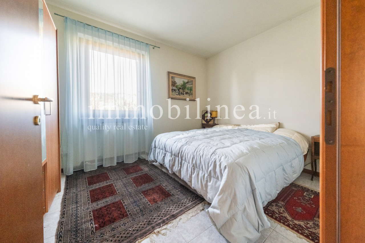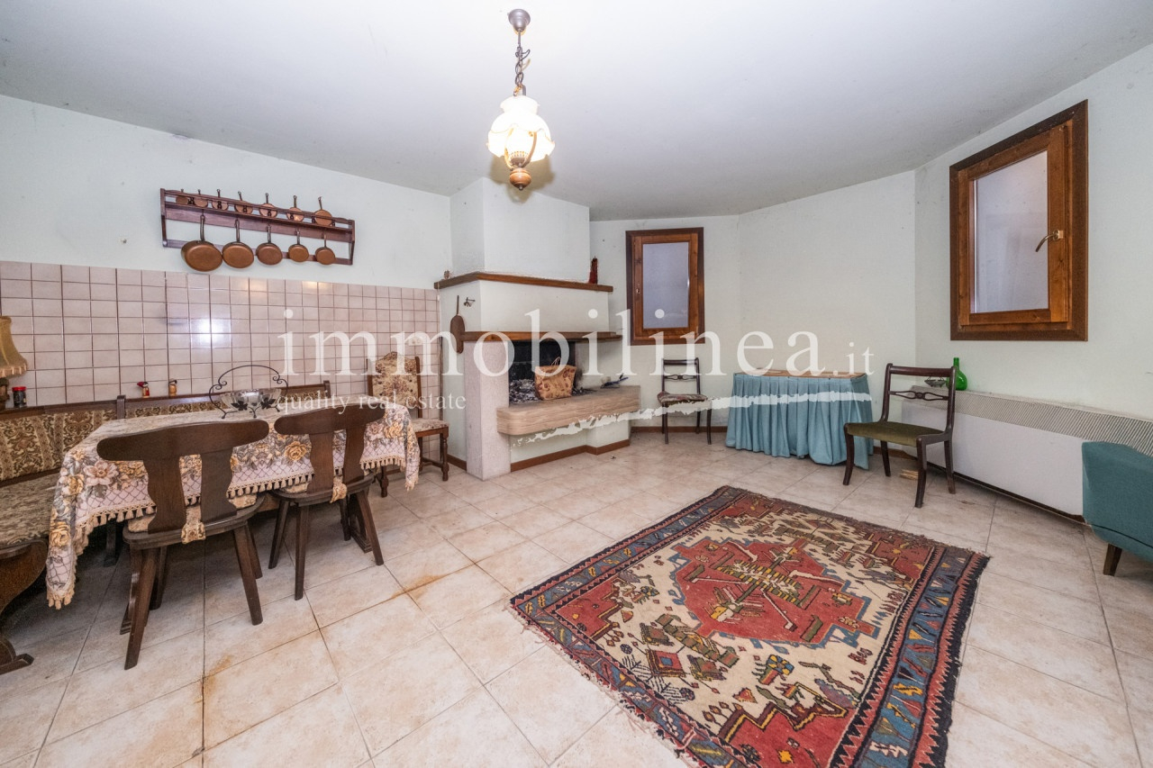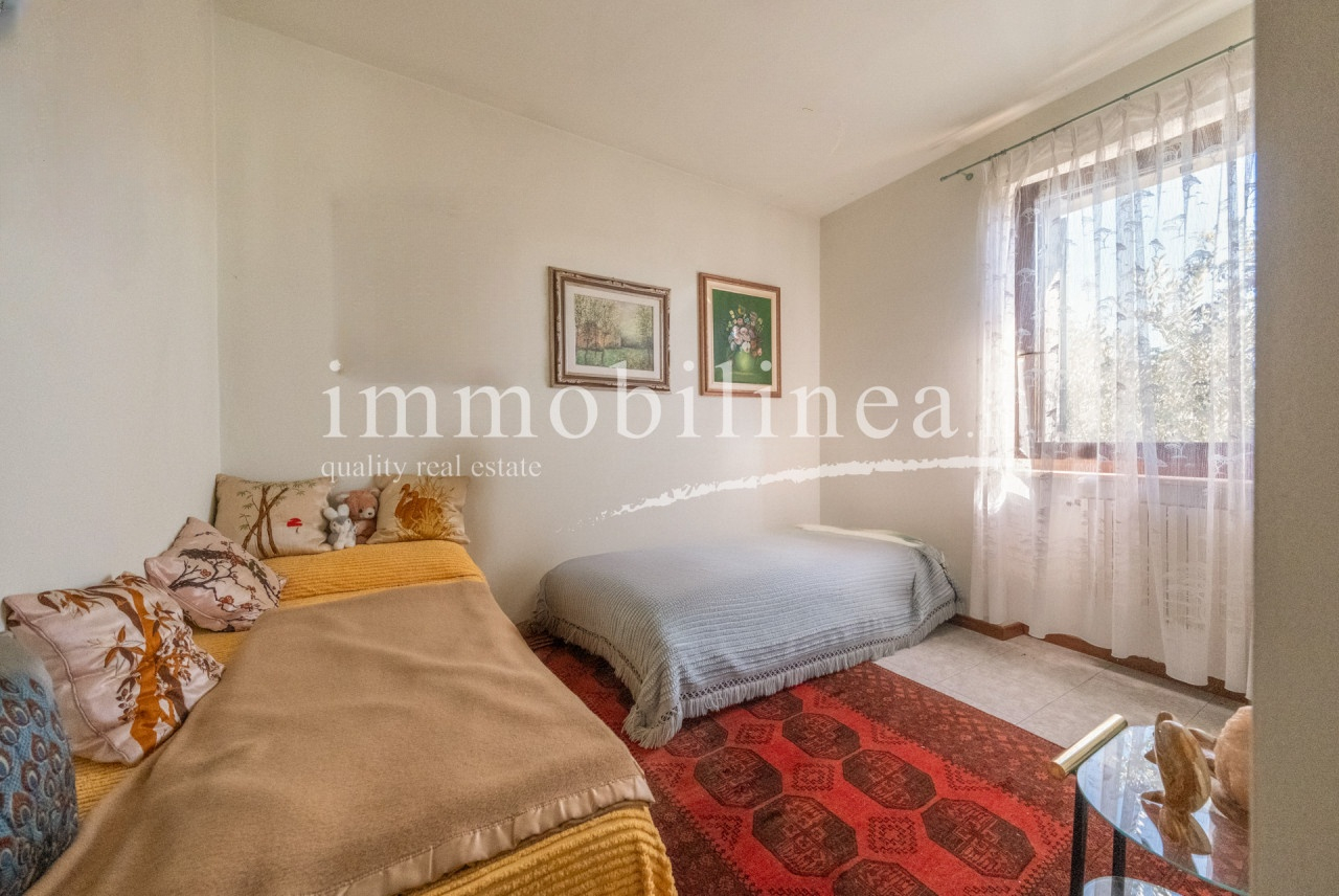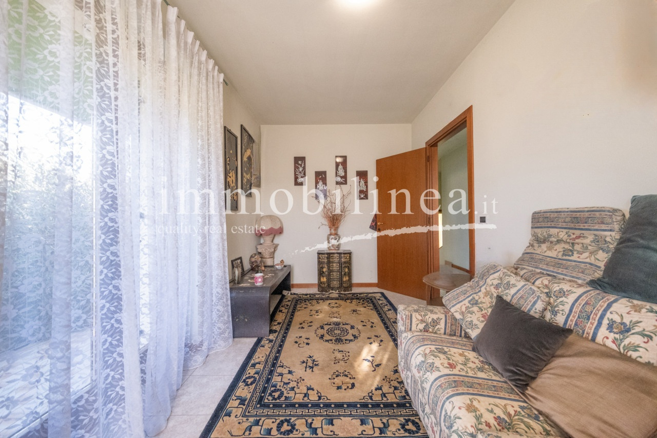 The spacious living area features elegant finishes such as light ceramic floors, a modern fireplace clad in marble, and refined architectural elements that give character to the spaces. The interiors are well distributed among cozy living areas, a bright dining room with direct access to the external porch, and classic furnishings that confirm the refined style of the house. A laundry room and bathroom complete the ground floor. On the upper floor there are three comfortable bedrooms equipped with panoramic windows, one bathroom, and a master bedroom with an en-suite bathroom and balcony.