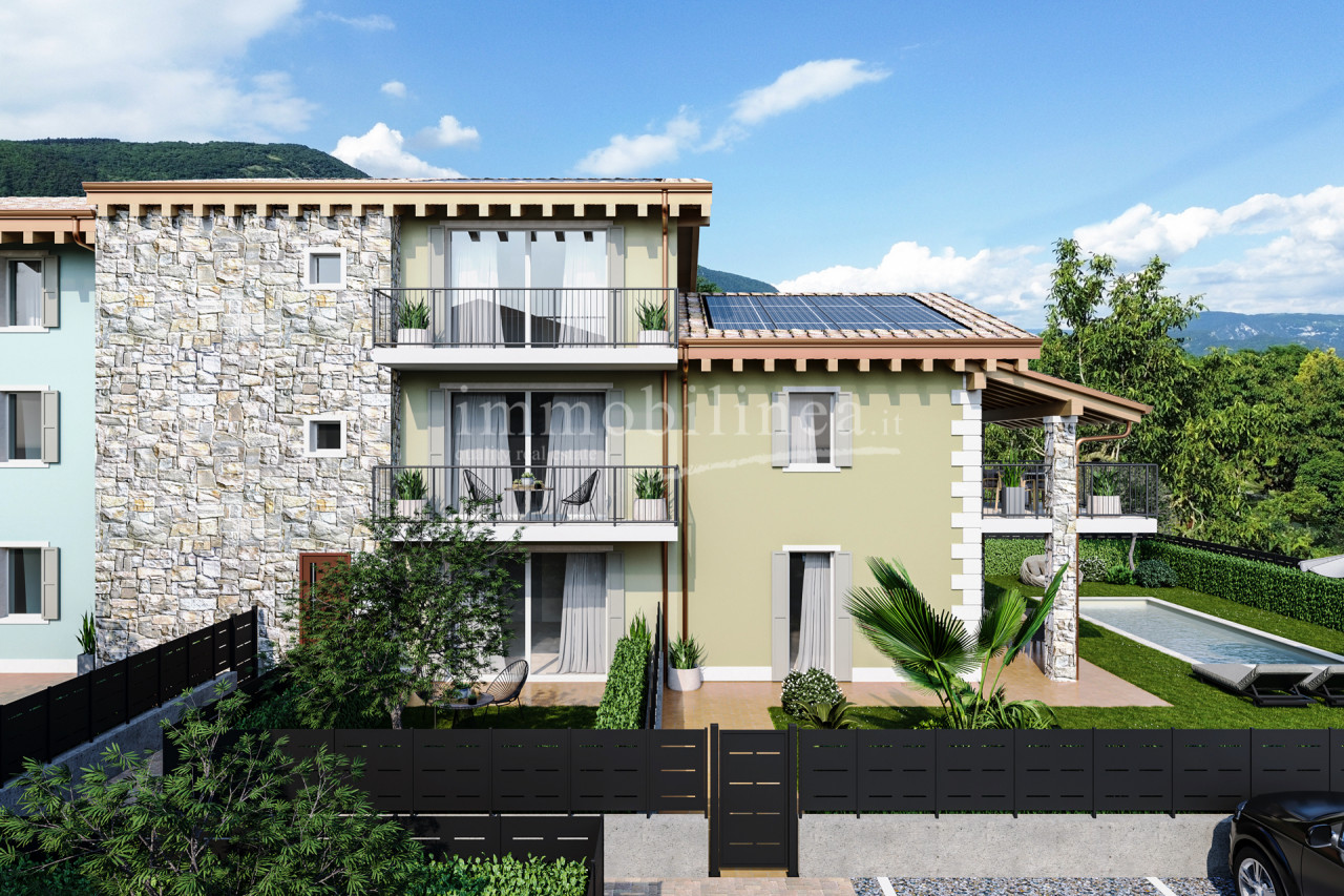 We offer for sale a splendid newly built terraced house located in the renowned area of Albarè, in the municipality of Costermano sul Garda. The property is part of an exclusive residential complex immersed in greenery and surrounded by the morainic hills of Lake Garda.