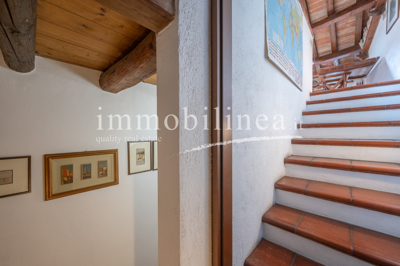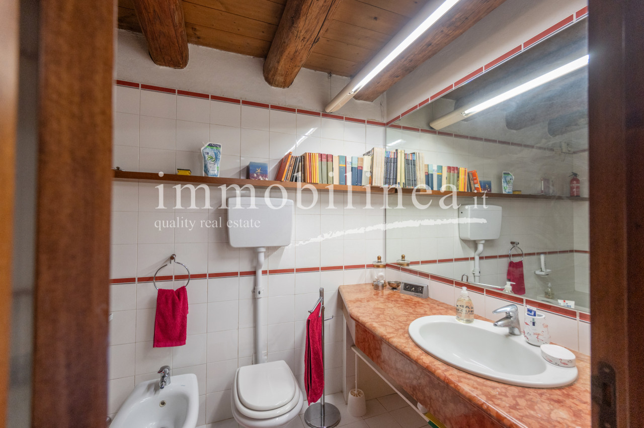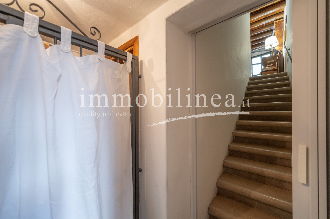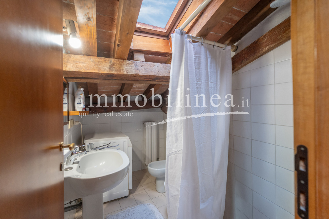 The building is developed over multiple levels. On the ground floor, there is a commercial space of about 45 sqm, currently leased and operational. The apartment has an independent entrance from 'vicolo cieco campanile' and features elegant finishes that reflect the typical architectural style of the area. On the first floor, there is a living room with a separate kitchen; elegant stairs lead us to the second floor where there are two bedrooms and the main bathroom, as well as to the attic which includes a storage room, a bathroom/laundry room, and a bright versatile open space. The interiors are characterized by windows that ensure natural lighting throughout the day, creating a warm and welcoming atmosphere. The layout is ideal for families or as an investment for hospitality activities; thanks to its central location all services are easily accessible.