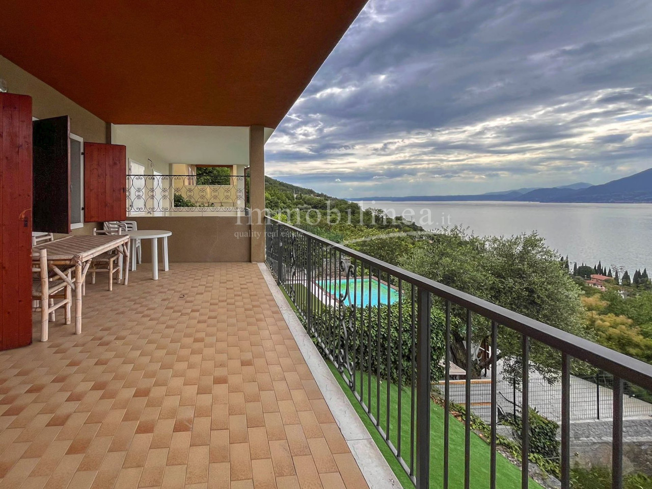 Al piano seminterrato, completamente ritrutturato un godibilissimo monolocale autonomo con bagno finestrato, un portico ed il giardino nel quale poter inserire una piccola piscina con una bellissima vista lago!