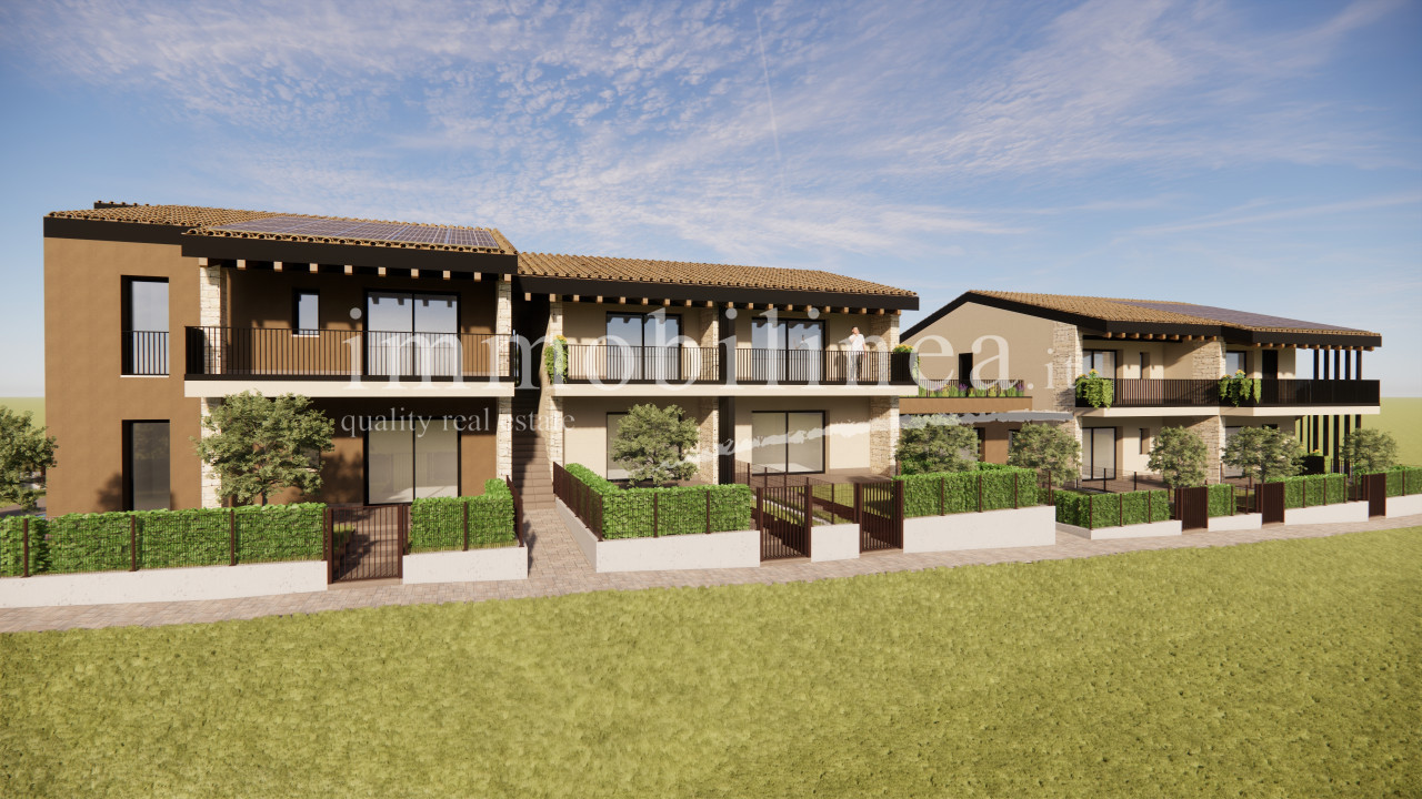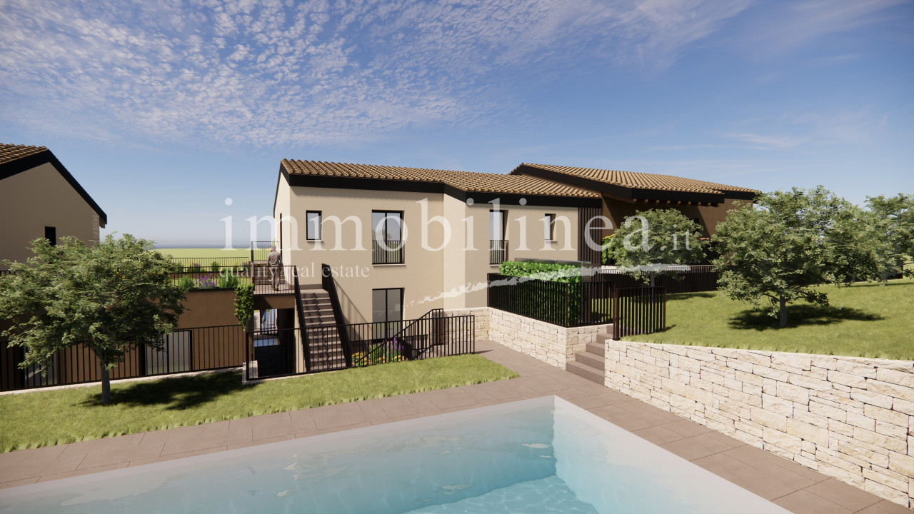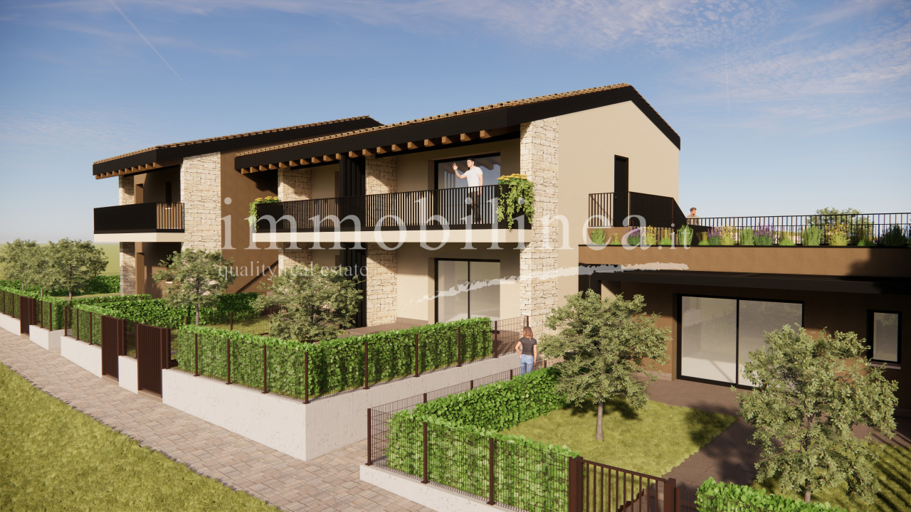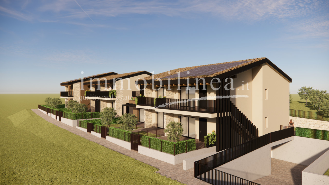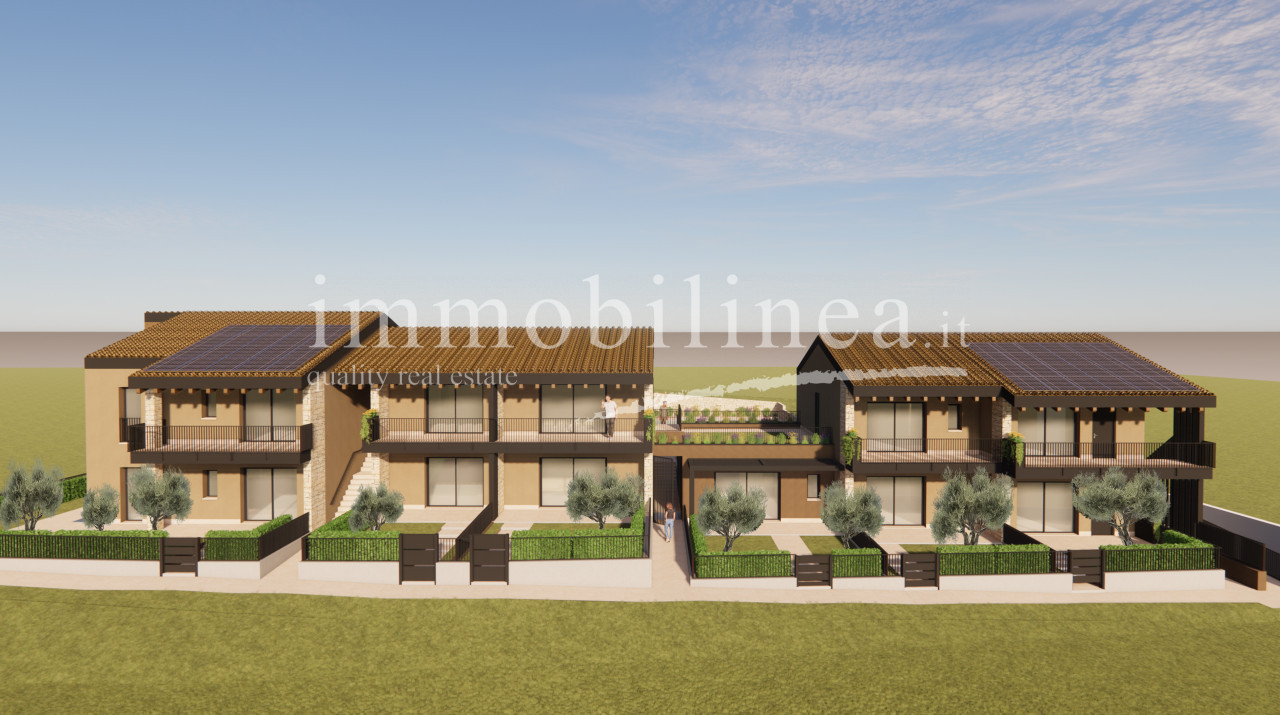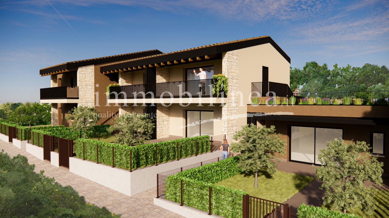 GARDA - Immobilinea è lieta di presentare in esclusiva il nuovo Residence Cimabue! Sta sorgendo in posizione vicinissima al centro rialzata e tranquilla, sarà caratterizzato dalla gradevole estetica e da un'immersione nel verde che lo circonda e si comporrà di tredici signorili appartamenti disposti al piano terra o primo. Saranno disponibili otto soluzioni trilocali, dotate quindi delle due camere da letto, di cui cinque al piano terra con giardino privato e tre al piano primo con le ampie vivibili terrazze. Il complesso, dotato di una bellissima piscina ad uso comune verrà realizzato in Classe A4 nel pieno rispetto dell'ambiente e delle normative vigenti con tutti gli appartamenti progettati con cura ed attenzione degli spazi e dei dettagli, realizzati secondo criteri costruttivi di ultima generazione e con la possibilità di soddisfare le idee individuali dell’acquirente che potrà sceglierne le finiture. Tutte le unità saranno dotate di garage nell'interrato, singoli o doppi in larghezza. Qualità edilizia elevata in combinazione con una posizione veramente vantaggiosa!