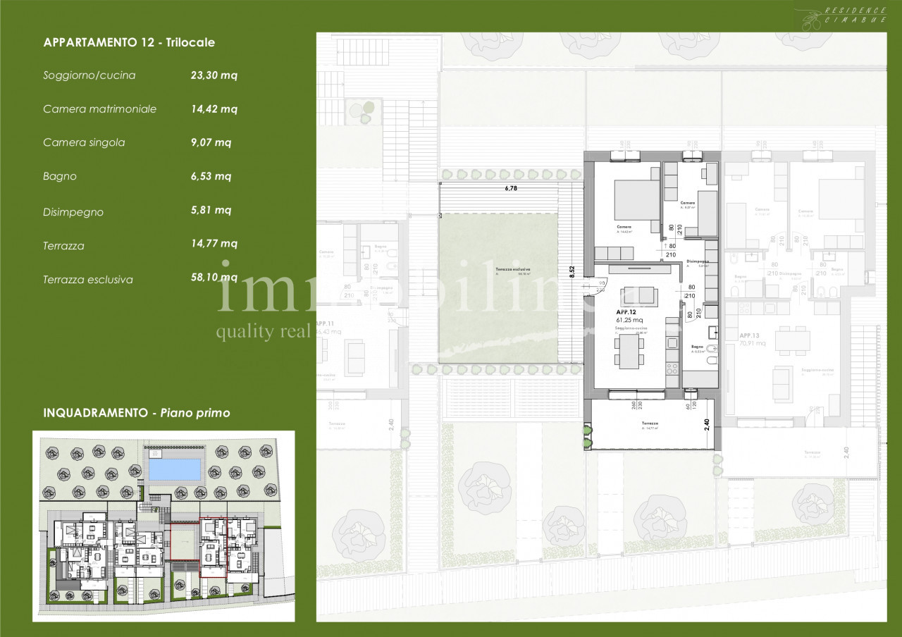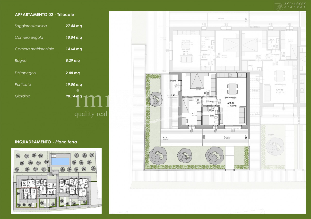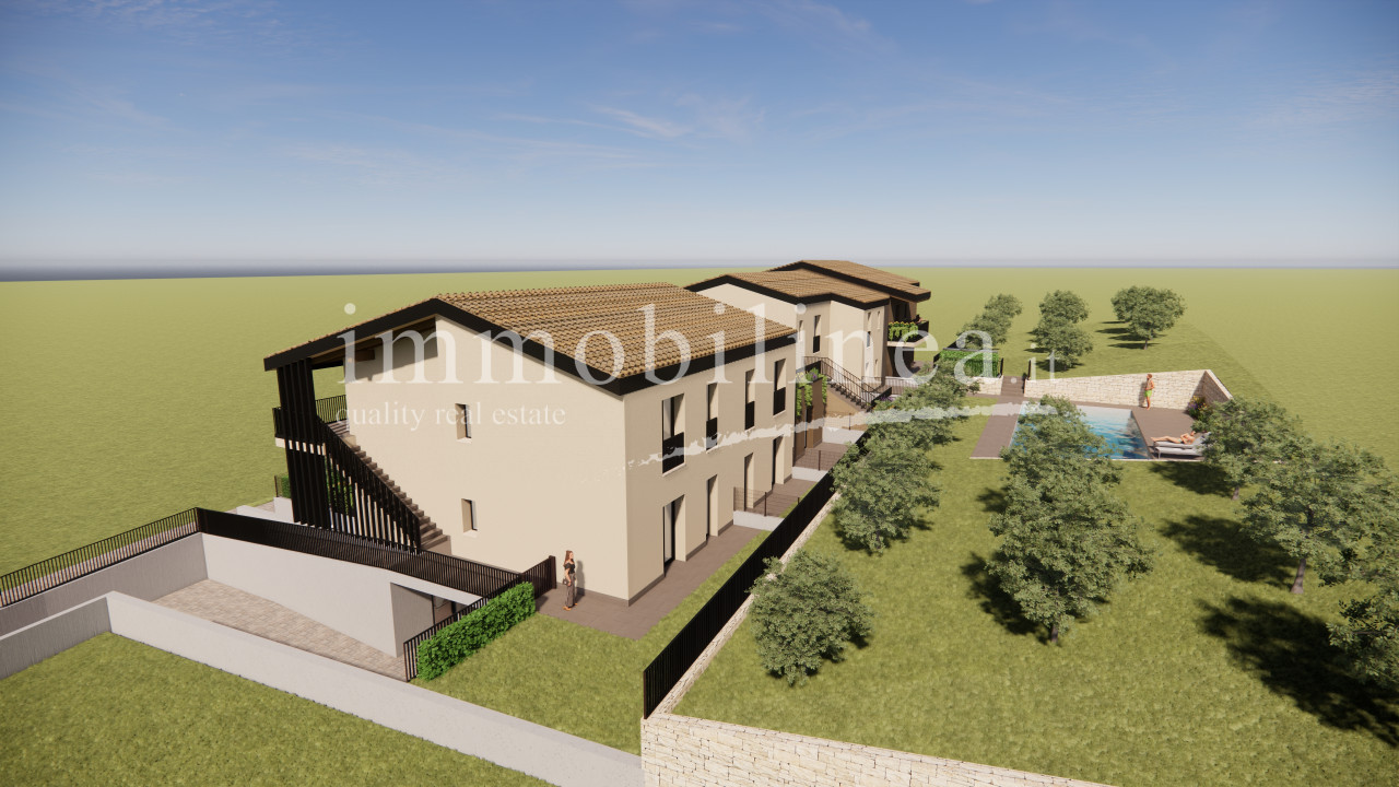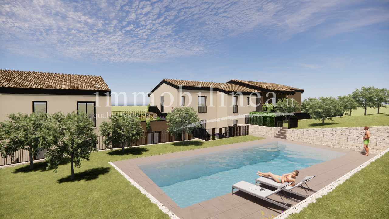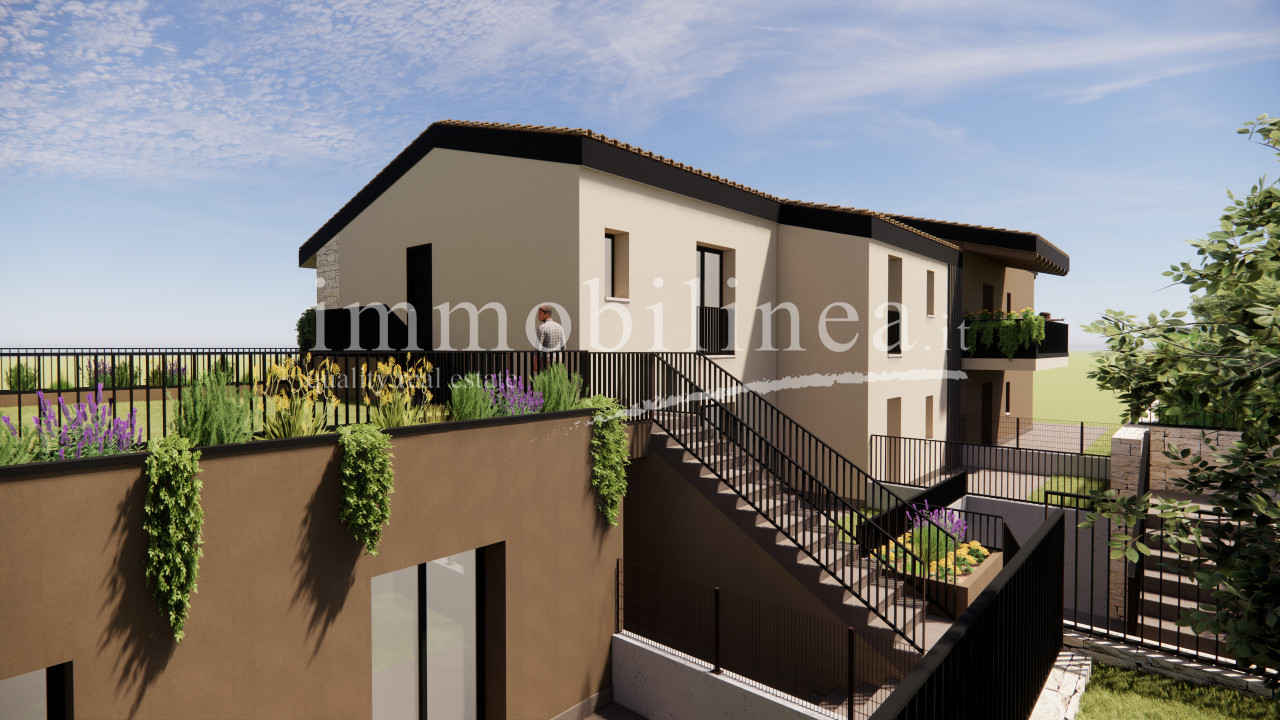 GARDA - Immobilinea è lieta di presentare in esclusiva il nuovo Residence Cimabue! Sta sorgendo in posizione vicinissima al centro rialzata e tranquilla, sarà caratterizzato dalla gradevole estetica e da un'immersione nel verde che lo circonda e si comporrà di tredici signorili appartamenti disposti al piano terra o primo. Saranno disponibili otto soluzioni trilocali, dotate quindi delle due camere da letto, di cui cinque al piano terra con giardino privato e tre al piano primo con le ampie vivibili terrazze. Il complesso, dotato di una bellissima piscina ad uso comune verrà realizzato in Classe A4 nel pieno rispetto dell'ambiente e delle normative vigenti con tutti gli appartamenti progettati con cura ed attenzione degli spazi e dei dettagli, realizzati secondo criteri costruttivi di ultima generazione e con la possibilità di soddisfare le idee individuali dell’acquirente che potrà sceglierne le finiture. Tutte le unità saranno dotate di garage nell'interrato, singoli o doppi in larghezza. Qualità edilizia elevata in combinazione con una posizione veramente vantaggiosa!