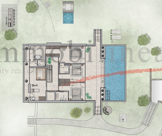 L’accesso alla residenza avviene tramite vialetti esclusivi delimitati da caratteristici muretti in pietra locale; l’ingresso è riservato ai soli residenti garantendo sicurezza e tranquillità assoluta. L’area parcheggio privata accoglie comodamente auto di prestigio.