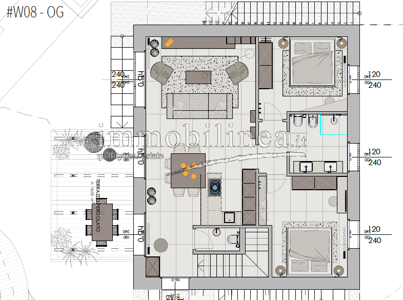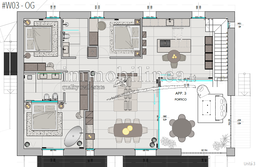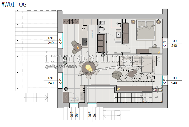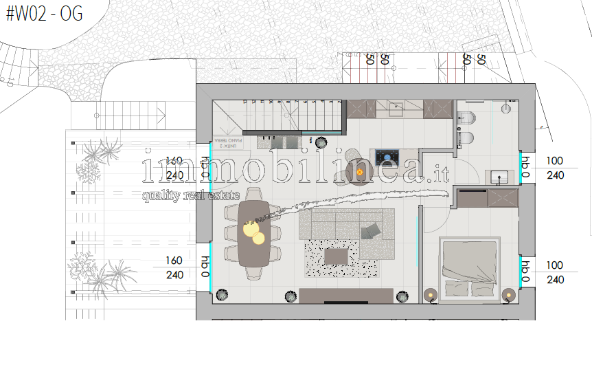 Le unità. di varie metrature saranno distribuite su due livelli collegati internamente da una scala privata. Gli ambienti saranno ampi e e luminosi, la zona giorno open space comprenderà soggiorno con area pranzo e cucina a vista completamente attrezzata; le camere matrimoniali spaziose, ed i bagni che presenteranno finiture eleganti ed elementi doppi come lavabi separati o vasca freestanding. Ogni unità sarà dotata inoltre di locali tecnici/ripostiglio ideali per organizzare al meglio lo spazio domestico.