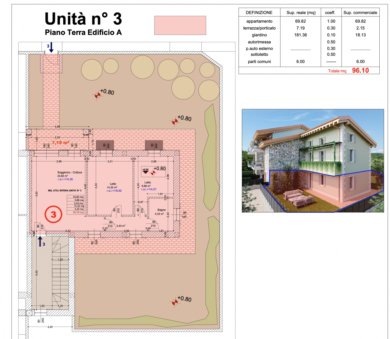TRILOCALI CON GIARDINO PRIVATO IN RESIDENCE CON PISCINA – COSTERMANO SUL GARDA